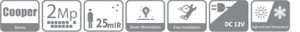 - Fixed lens (2.8 mm;3.6 mm optional)