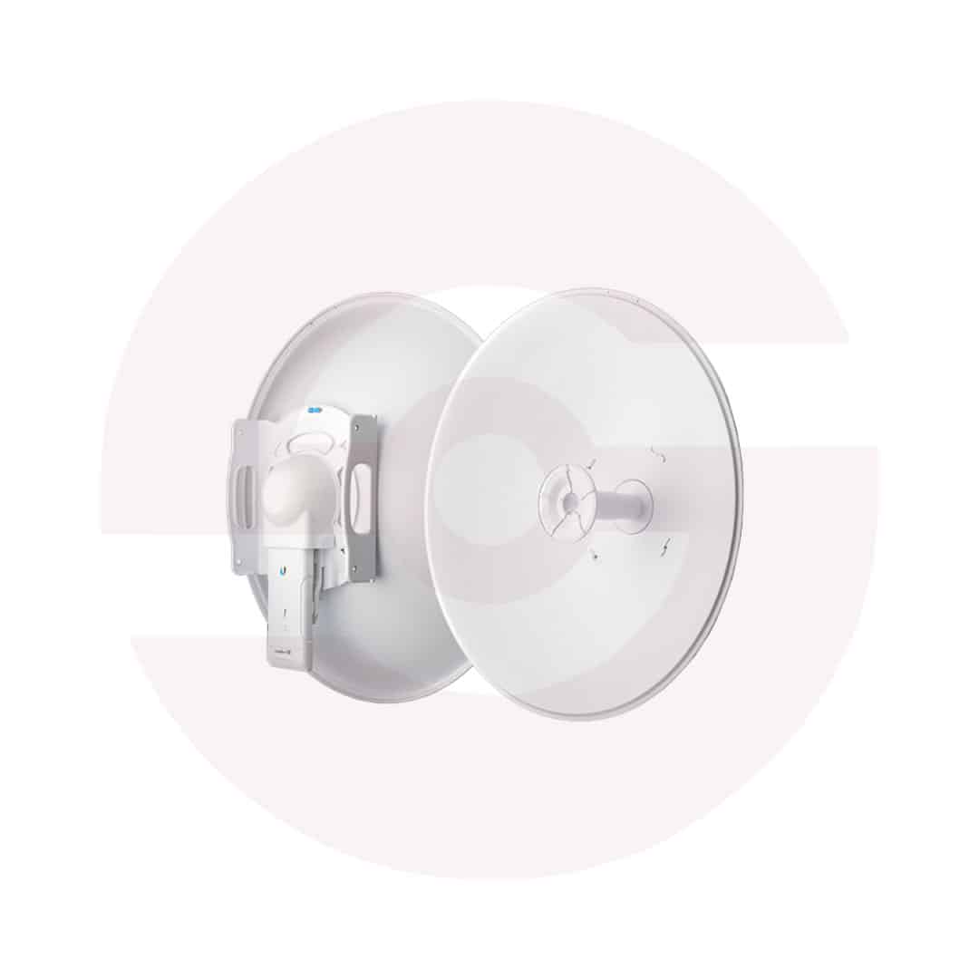 5 GHz, 30 dBi RocketDish LW antenna with extended depth of the dish reflector that rejects noise interference in co-location deployments.